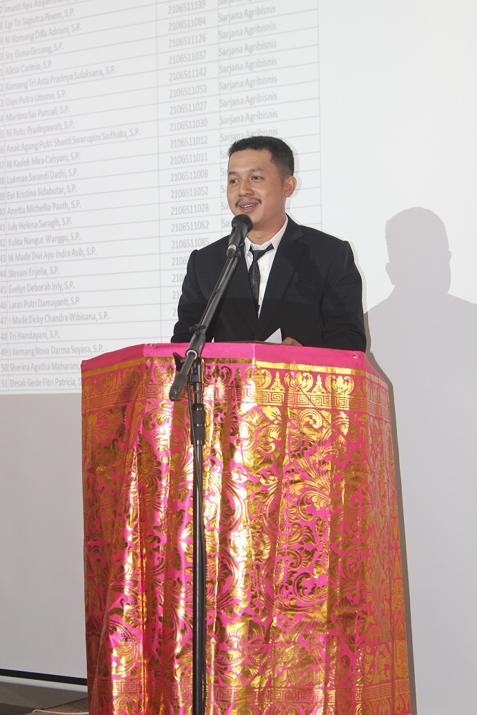 In her remarks, Vice Dean I Dr. Putu Udayani Wijayanti, S.P., M.Agb., representing the Dean of the Faculty of Agriculture, conveyed her deepest congratulations to all prospective graduates on their successful completion of their studies at the Faculty of Agriculture. She said: "The long journey, filled with challenges and hard work, has been a long one, and today the prospective graduates have proven that they can achieve their dreams.