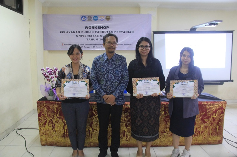 The event was opened by the Dean of the Faculty of Agriculture, I Putu Sudiarta, Ph.D., who conveyed that public service is also one aspect to uphold the Integrity Zone within the Faculty of Agriculture. "Good service does not stop when we have said '3S - Smile, Greet, Greet', but also how we complete our service in accordance with the Service Standards that we have," he said in his remarks. This activity attracted the attention of participants consisting of lecturers, educational staff and laboratory assistants who were invited to attend this workshop. It was seen from the number of participants who attended, as many as 90 people, which was also interactive discussion sessions involving participants and speakers. The delivery of interesting materials also increased the attention of participants so that the discussion activities became interesting and enjoyable.