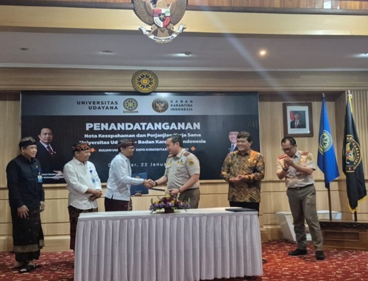Denpasar - At the Postgraduate Hall of Udayana University, Sudirman Campus, Denpasar, on Friday, January 22, 2026, Udayana University and the Indonesian Quarantine Agency committed to implementing a collaboration marked by the signing of a Memorandum of Understanding (MoU). The event was attended by Udayana University Rector, Prof. Ir. Ketut Sudarsana, S.T., Ph.D., along with the Vice Rector for Student Affairs and the Vice Rector for Planning, Cooperation, and Information.